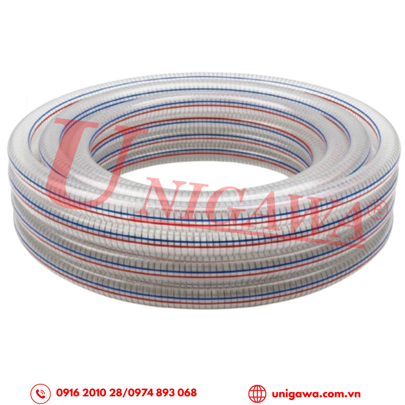 Đây là thành phần then chốt tạo nên sự khác biệt và sức mạnh của loại ống này. Một sợi thép xoắn lò xo được gia cố chạy dọc theo thân ống, được nhúng chìm hoàn toàn trong lớp nhựa PVC. Lõi thép này đóng vai trò như một bộ khung chịu lực, mang lại độ cứng vững cần thiết.