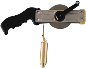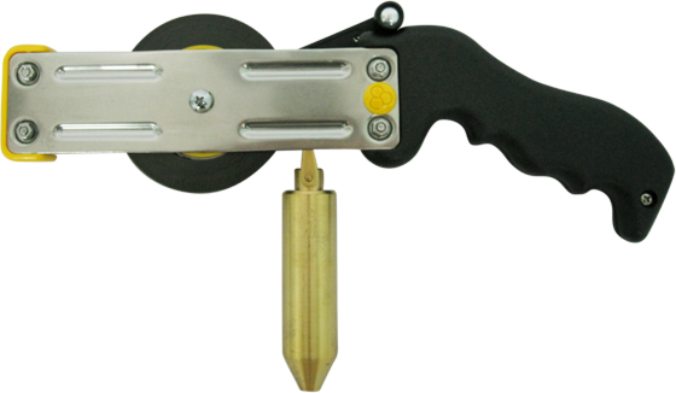 – Vật liệu: Thước đo bằng thép đen có gắn quả dọi bằng đồng ở đầu thước.